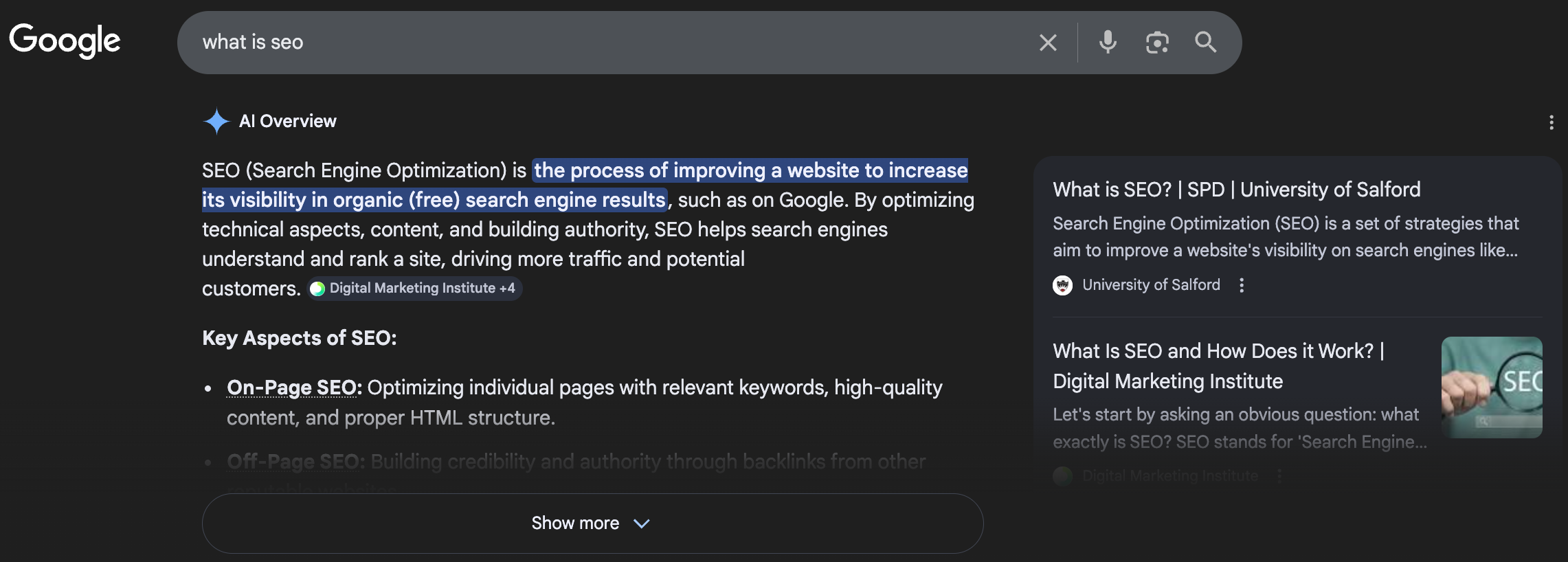 You may have seen a small box at the top of Google showing a short paragraph explaining SEO. That paragraph was taken from a website that was structured well enough for Google to extract it.