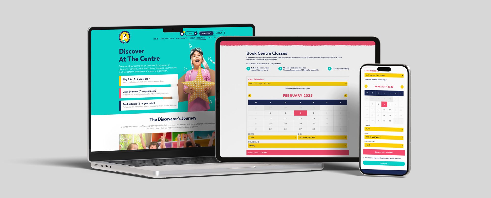 Develop a unified corporate website and online booking system to simplify class registrations, enable online credit purchases, and streamline branch-specific sales management. The solution required scalable architecture, a user-friendly interface for parents, and a modern corporate presence to position Discover Early Years as a leader in early childhood education.